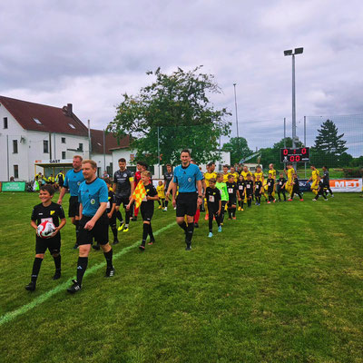 Richard Hempel, 2. Bundesliga Schiri, geleitet. So etwas erlebt man nicht alle Tage. Außer der VAR in Köln war alles Bundesliga reif. Sogar das Linienspray kam zum Einsatz.